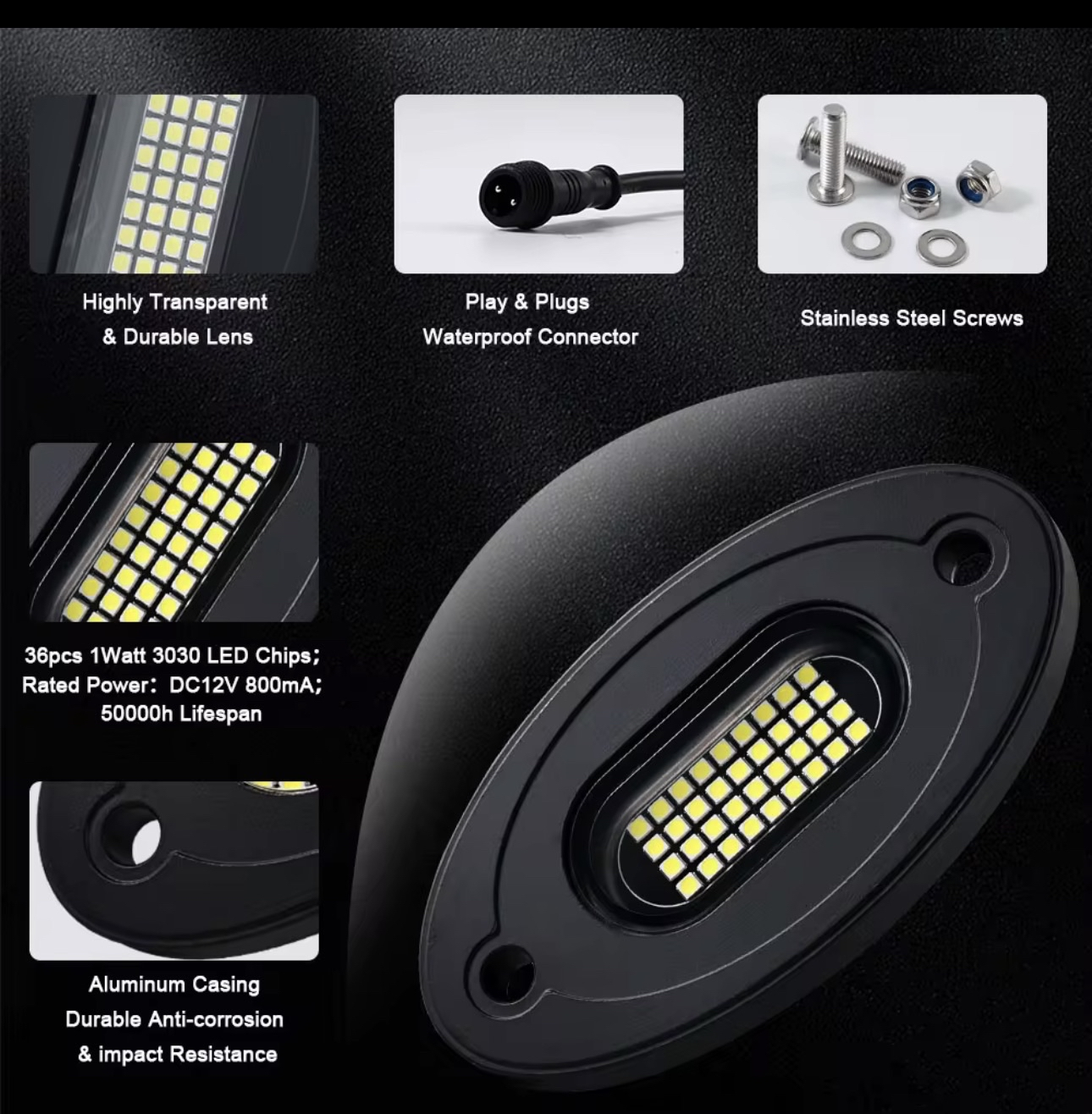RGBW–36 LED’s per rock light. SET OF 4